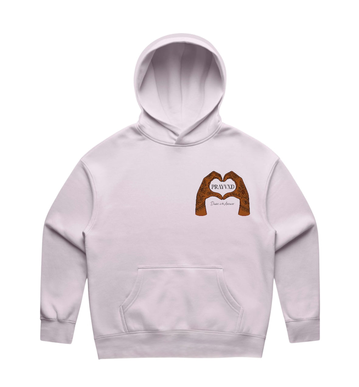 Unlock the Sisters Dua is the Answer Hood, offering comfort with its relaxed fit and mid-weight 9.4 oz fleece. Features include a pullover style, drop shoulder, kangaroo pocket, and ribbed sleeve cuffs, complemented by a self-fabric lined hood.